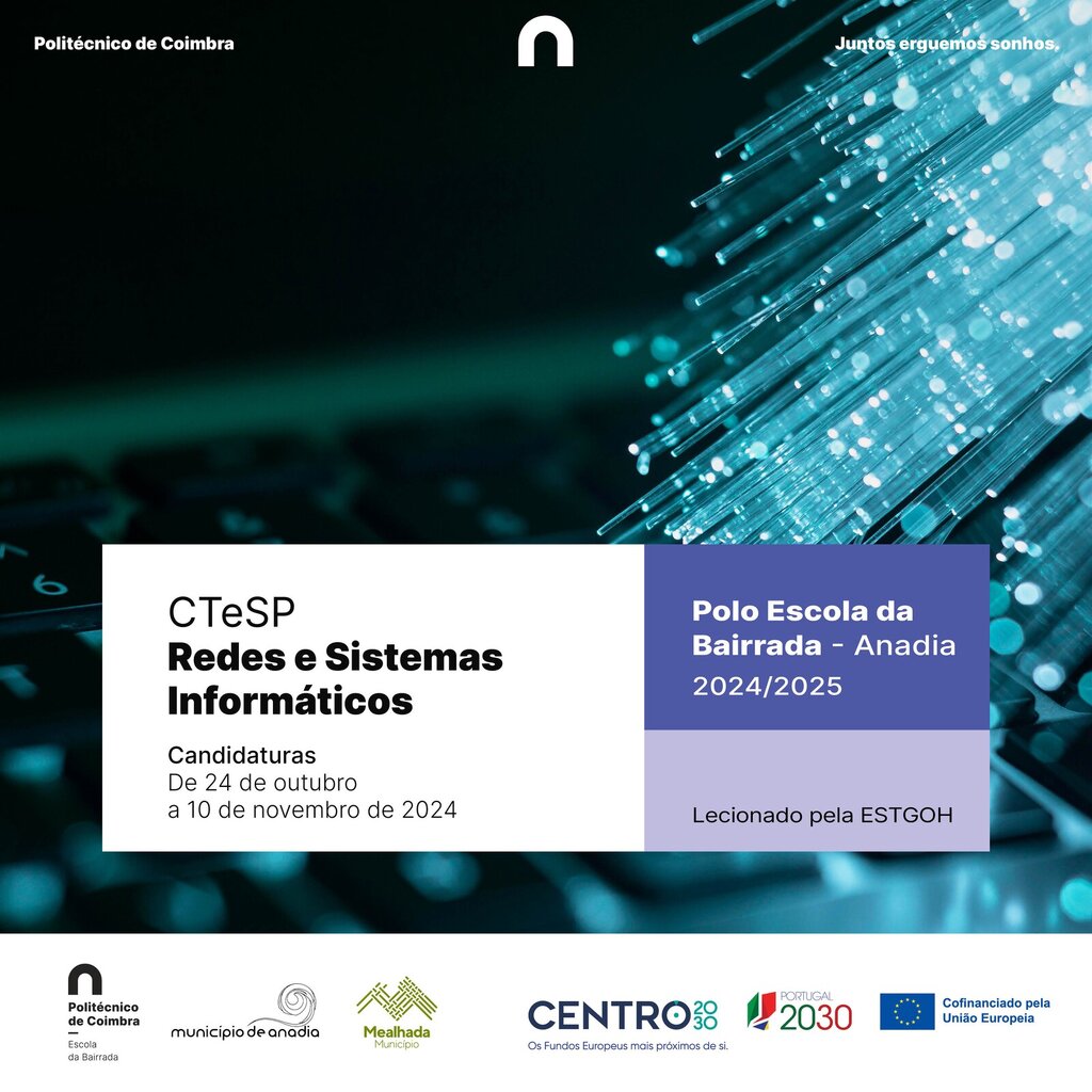 O período para apresentação de candidaturas ao Curso Técnico Superior Profissional (CTeSP) em Redes e Sistemas Informáticos, na Escola da Bairrada, polo do Instituto Politécnico de Coimbra em Anadia e na Mealhada, decorre entre 24 de outubro e 10 de novembro.