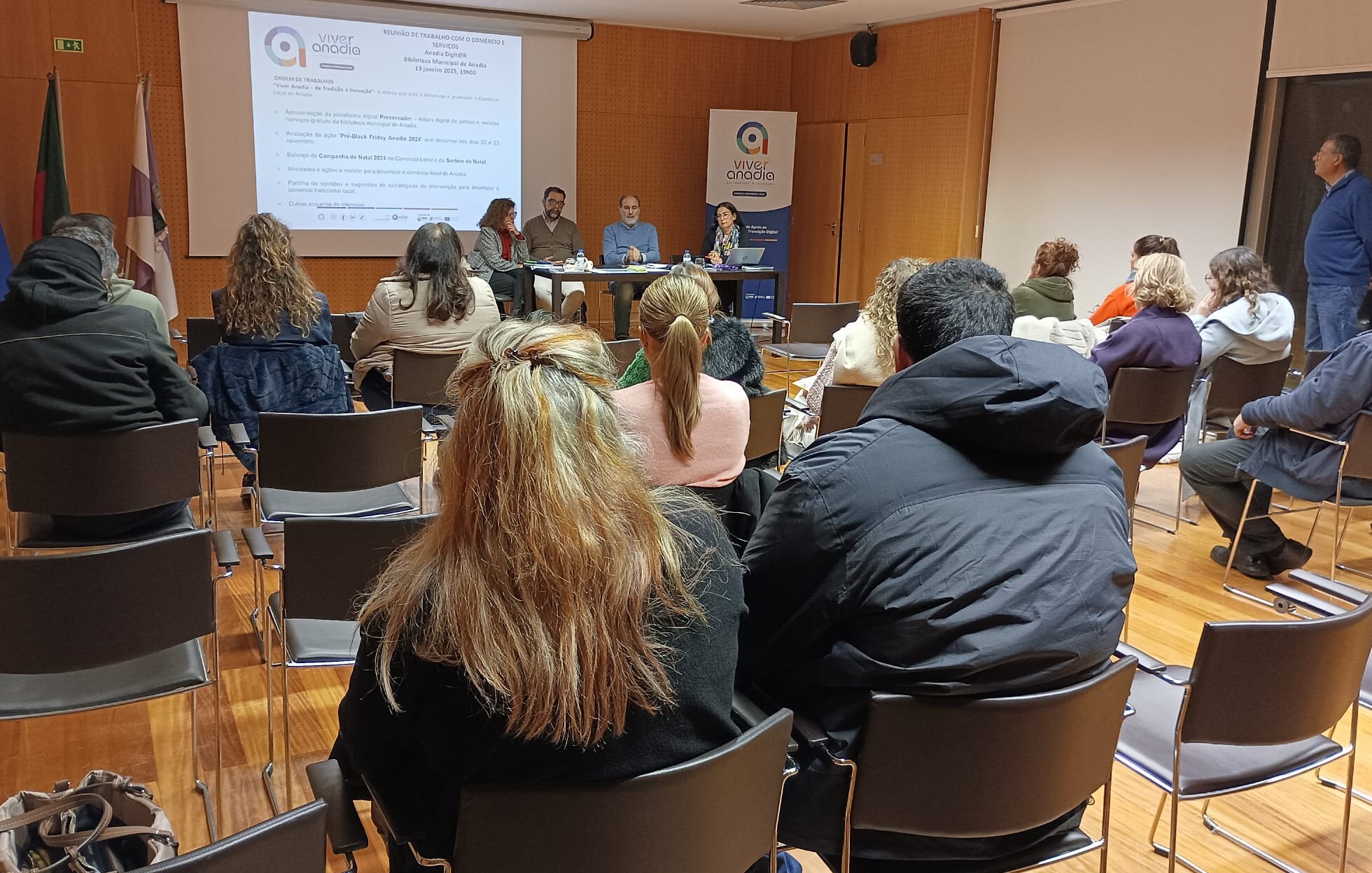 A Biblioteca Municipal de Anadia acolheu uma reunião de trabalho do “Anadia Digit@l” com os agentes económicos do comércio local. O momento serviu para fazer o balanço do “Pré-Black Friday” e da campanha de natal, tendo ainda sido anunciadas algumas iniciativas que irão ter lugar nos próximos meses, nomeadamente a realização de um “shopping” ao ar livre, com o intuito de dinamizar e promover o comércio local.