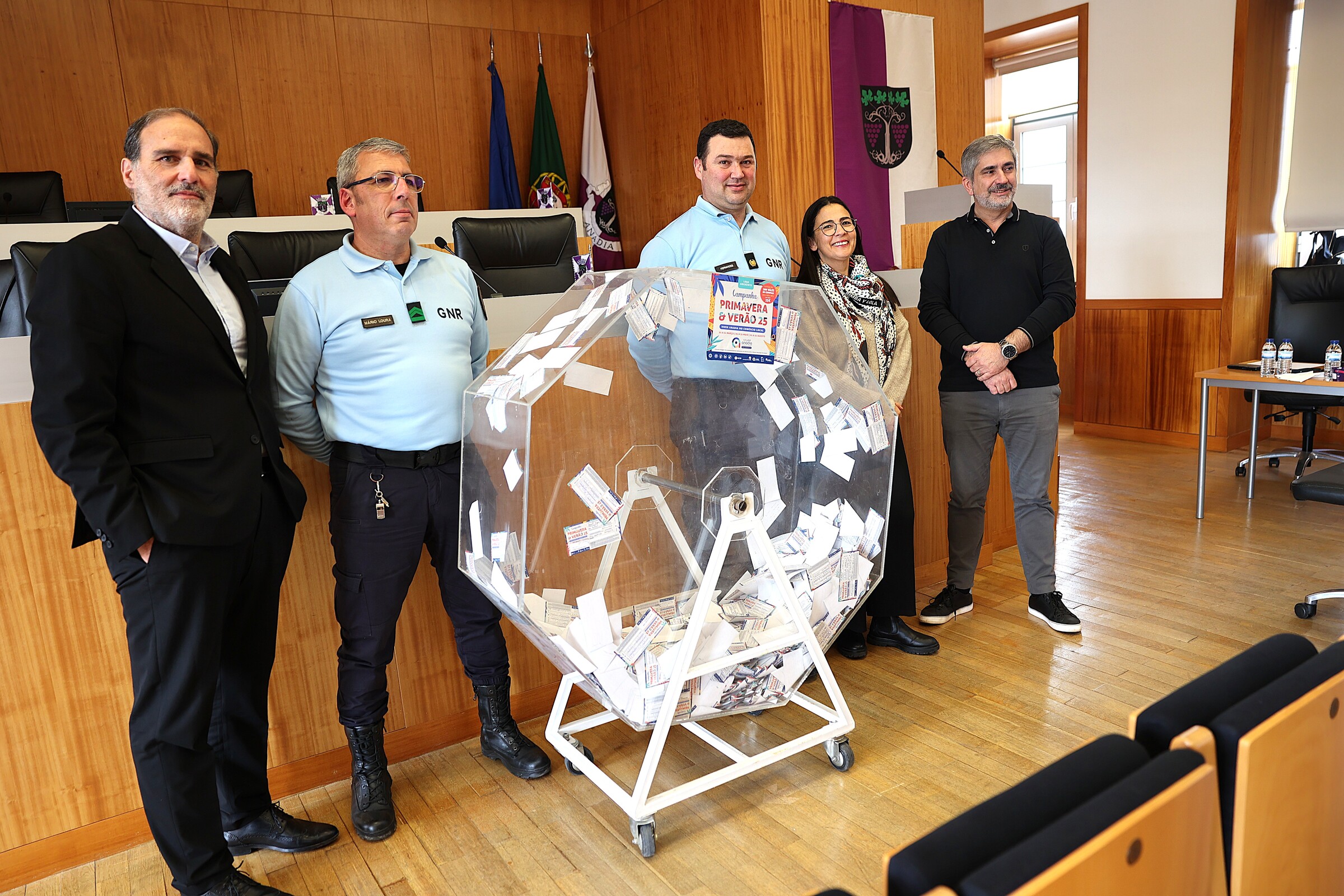 O sorteio da Campanha “Viver Anadia” no Comércio Local | Campanha Primavera & Verão 2025, decorreu na passada terça-feira, 1 de abril, no Salão Nobre da Câmara Municipal de Anadia, com a presença de representantes do Município, Associação Comercial e Industrial da Bairrada (ACIB) e da Guarda Nacional Republicana.