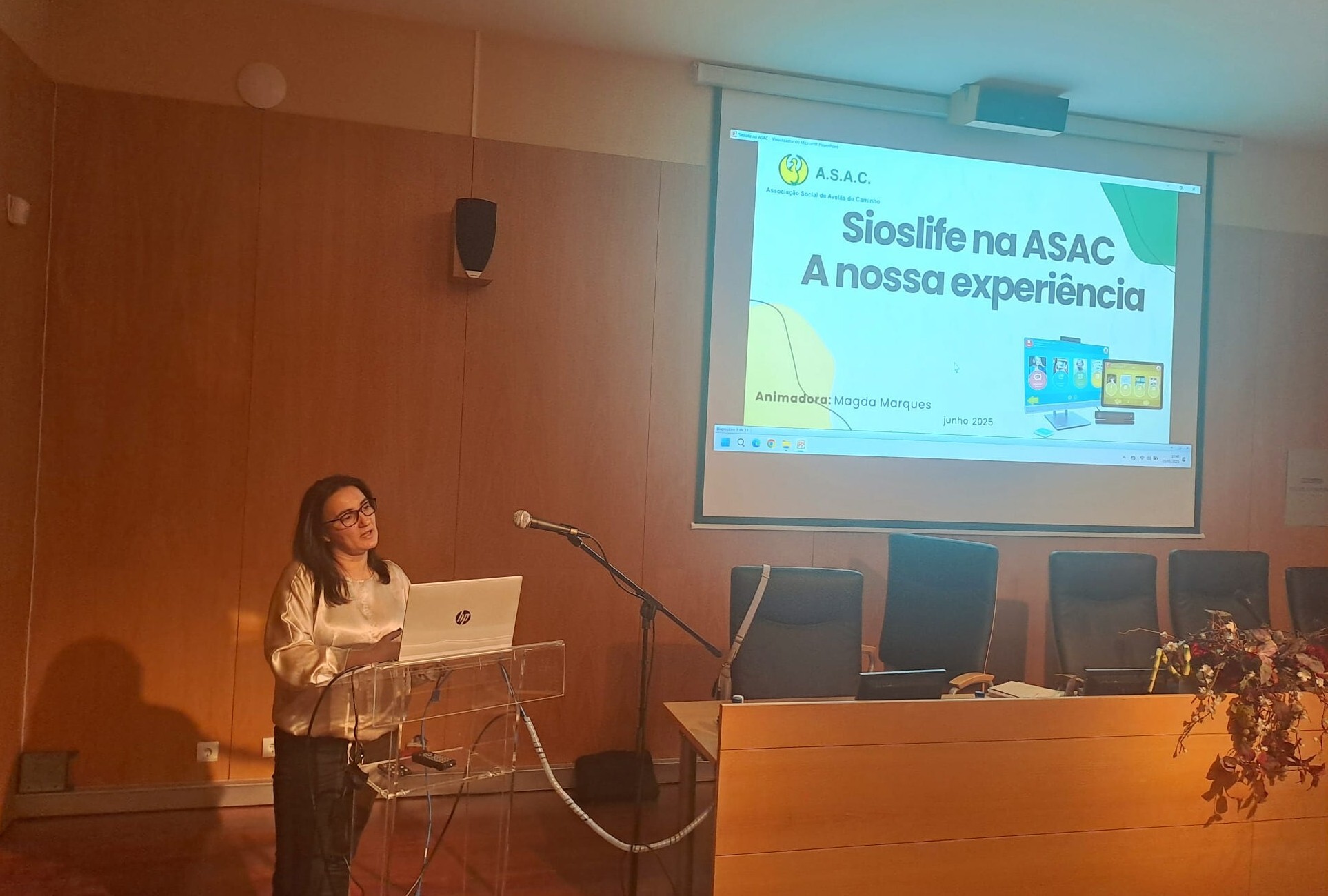 A ASAC apresentou a sua experiência com a plataforma digital “Sioslife”, que inclui um Sistema interativo social, dirigido ao público senior e que apresenta diversas funcionalidades, tais como, fazer videochamadas simples com os familiares, realizar atividades criativas, utilizar jogos que estimulam a mente, aceder a notícias, filmes e músicas, entre outras, de uma forma intuitiva, adaptável e acessível aos idosos e colaboradoras.