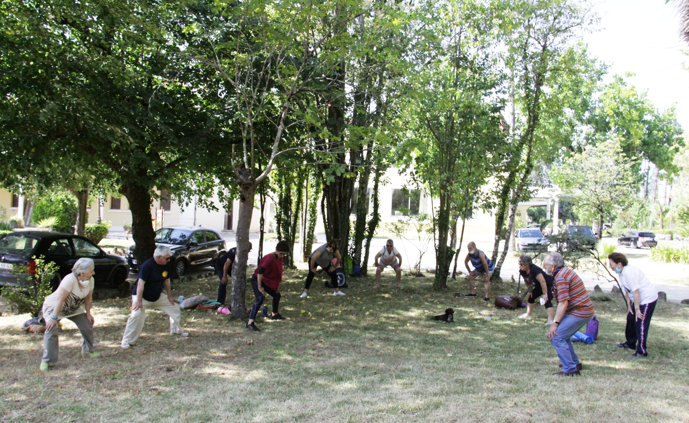 ALUNOS DA UNIVERSIDADE SÉNIOR DA CURIA FAZEM GINÁSTICA DE MANUTENÇÃO AO AR LIVRE