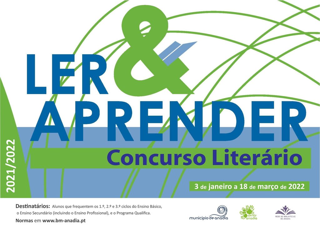 área de conteúdos (não partilhada)A Câmara Municipal de Anadia está a promover a XII edição do concurso literário “Ler & Aprender”, dirigido aos alunos de todas as instituições de ensino do concelho, tendo como propósito promover hábitos de leitura e incentivar a escrita criativa.