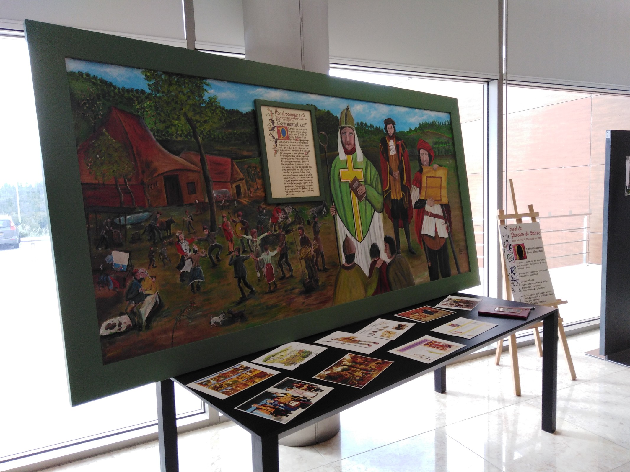 O painel, com as dimensões de 2,50x1,20m, em tinta acrílica, apresenta o momento da leitura do Foral com a presença de membros do clero, da nobreza e do povo. No quadro pode ainda ver-se a transcrição da 1.ª página do foral que foi feita pelo professor João Eugénio Simões.